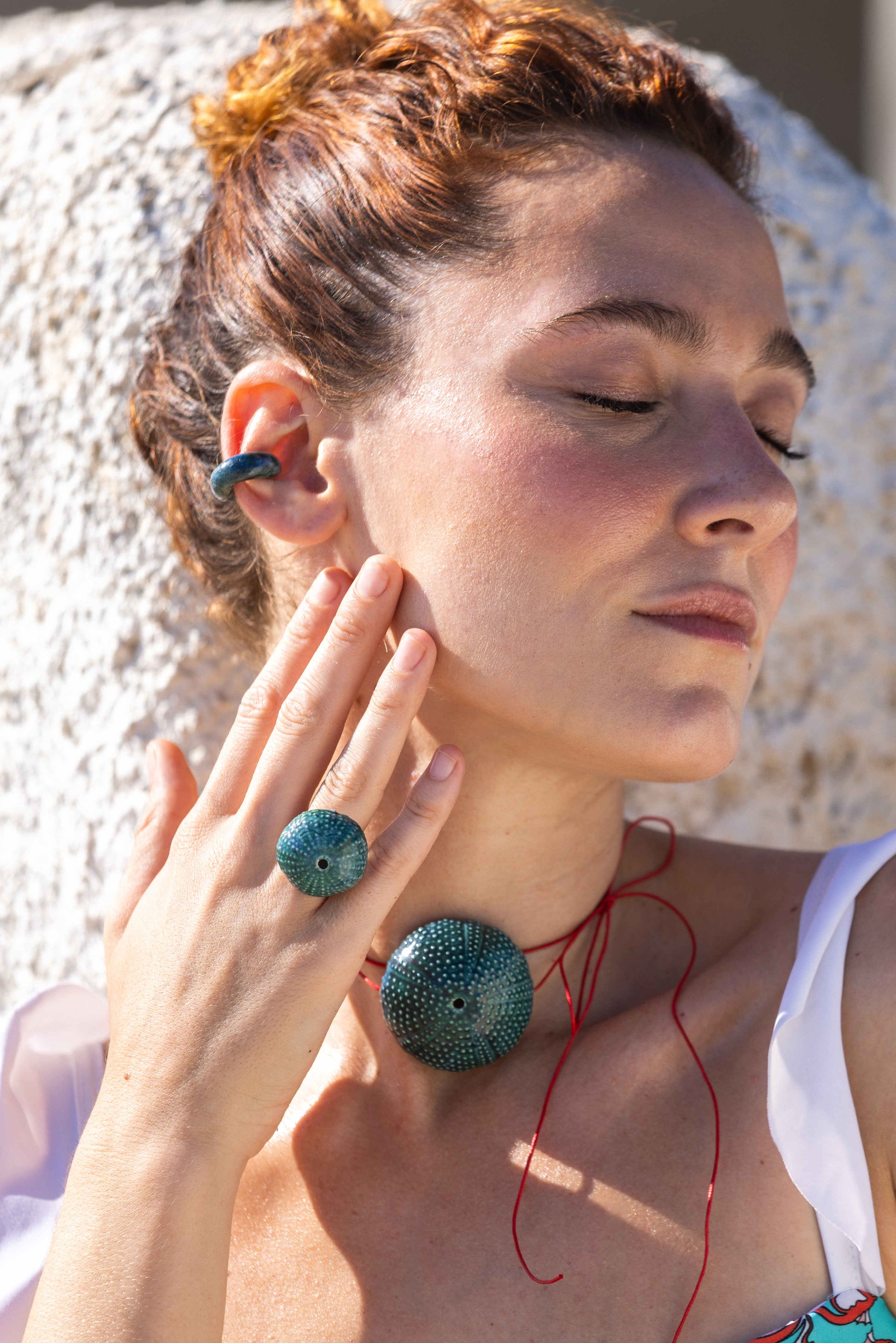 Ogni pezzo nasce da un primo stampo in silicone degli esoscheletri, che garantisce non solo una riproduzione accurata di ogni dettaglio, ma anche l'incolumità della struttura della stessa conchiglia o echinide. Alla successiva colata in gesso, rifinita a mano per valorizzare e ripulire le texture originali, segue quella in argilla liquida. Qui si definisce per la prima volta la forma del gioiello che viene poi rifinita, decorata in ogni sua sfumatura a mano, oppure smaltata ed impreziosita con pietre e/o lustri ceramici come oro, platino e madreperla.